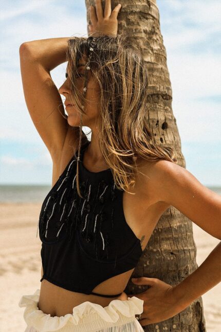Bordado a mano con precisión, Lyra hace parte de la colección Momentum—una oda al optimismo, la feminidad poderosa y la versatilidad moderna. Ya sea para un día de piscina o estilizado como top para un brunch, este set fue hecho para moverse contigo y robarse todas las miradas.